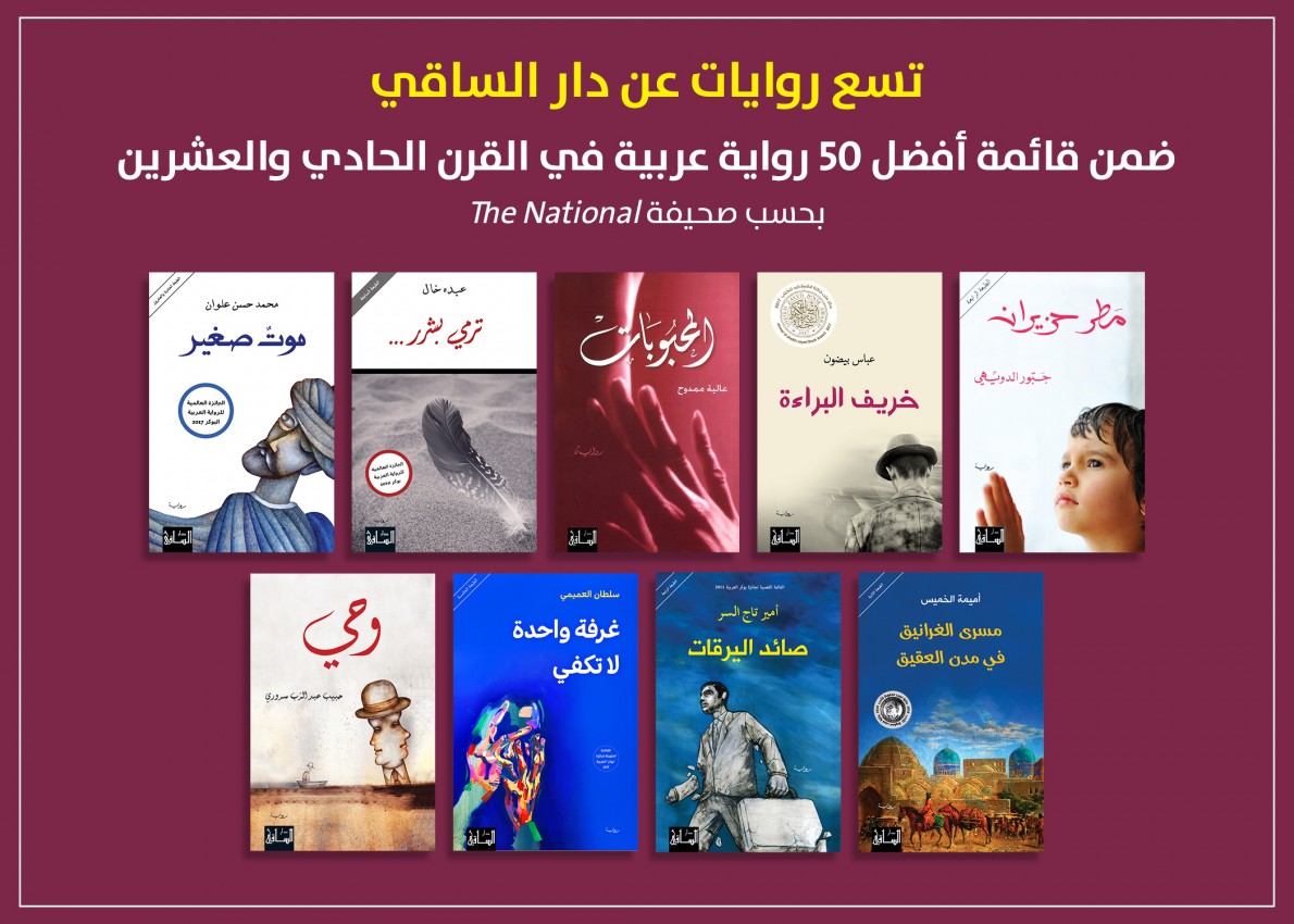 اختارت صحيفة The National تسع روايات من إصدارات دار الساقي ضمن قائمتها لأفضل خمسين رواية عربية في القرن الحادي والعشرين، في احتفاء نوعيّ بالأدب العربي المعاصر وبتنوّعه السردي والفكري.